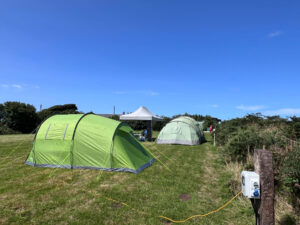 We have 22 pitches with plenty of space in between. 8 pitches have electric hook-ups. We have a well serviced shower and loos and covered areas for washing up.